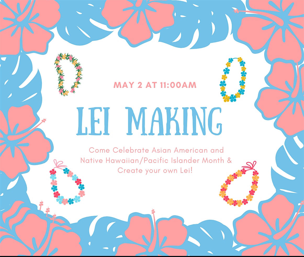 A lei is “a hug that express love, affection, and acknowledgment. Come Celebrate AANHPI Month & create your own Lei!Lei are created